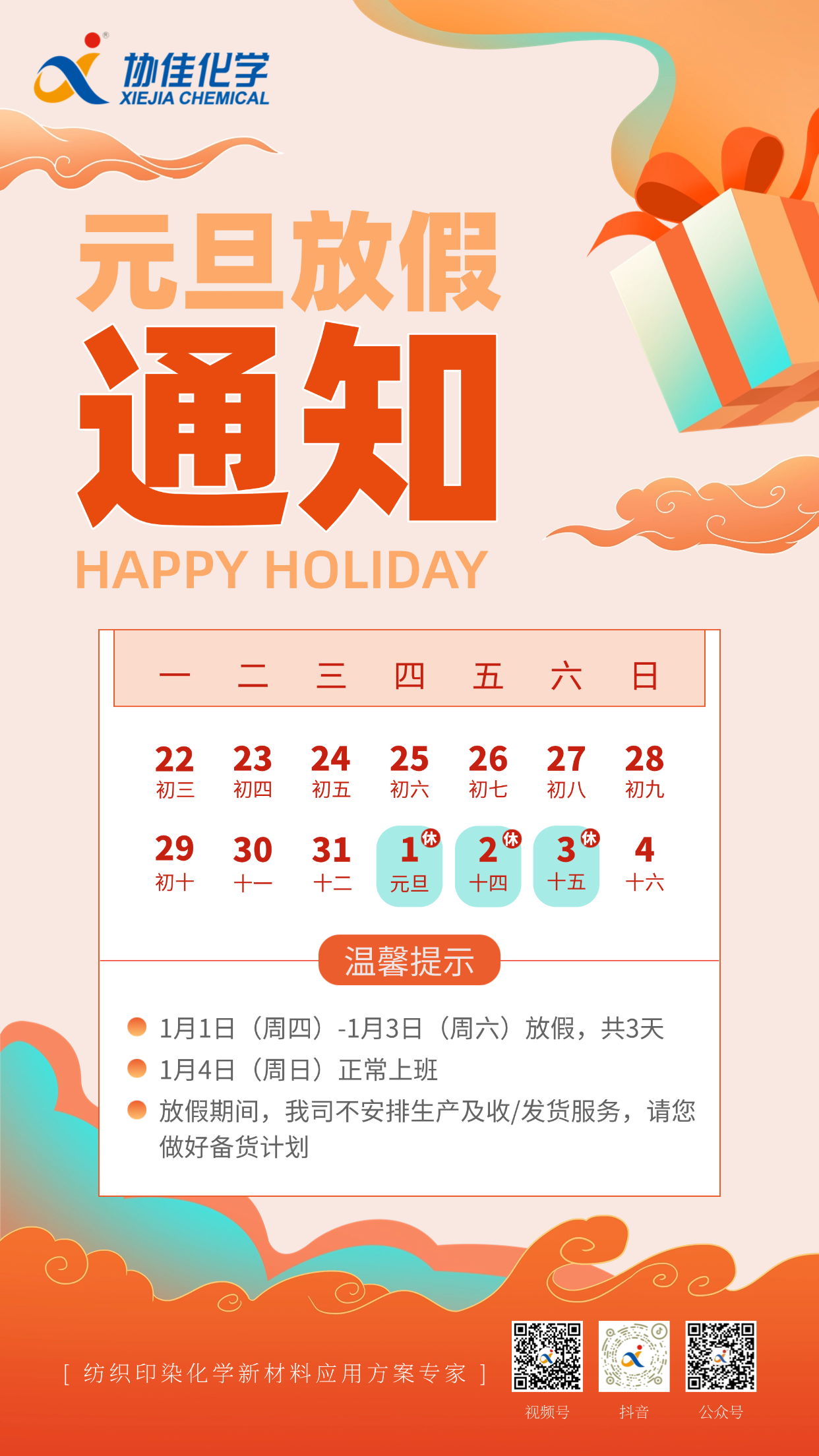 您的位置:首页>新闻中心 >2026年元旦放假通知