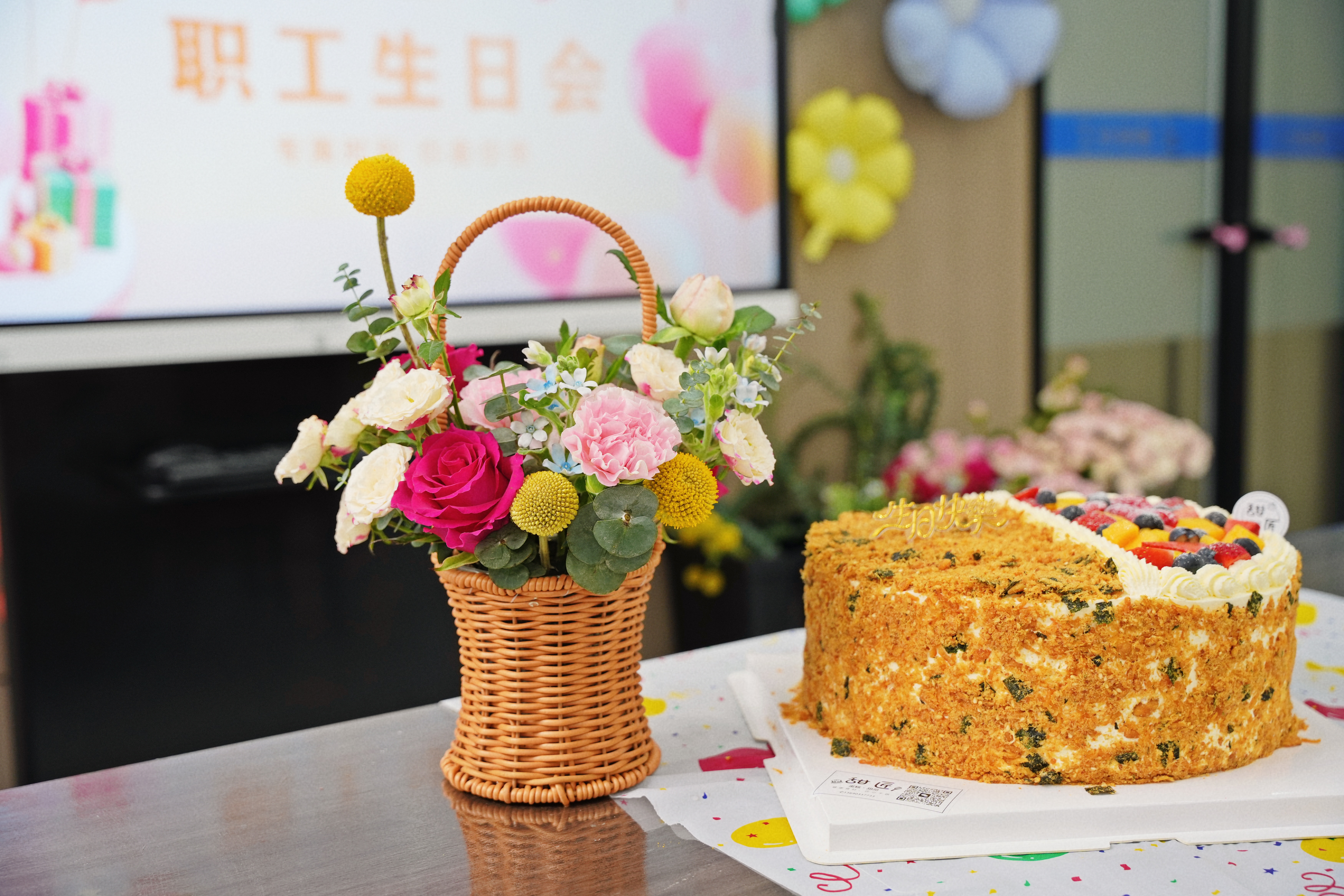 "许个愿吧!"在主持人的带领下,寿星们闭上眼睛,默默许下了对未来的美好期许。随后,大家围坐在一起,分享着甜蜜的蛋糕,畅聊着工作与生活。蛋糕的甜,花儿的香,同事的笑,在此刻交织成最美的画卷。